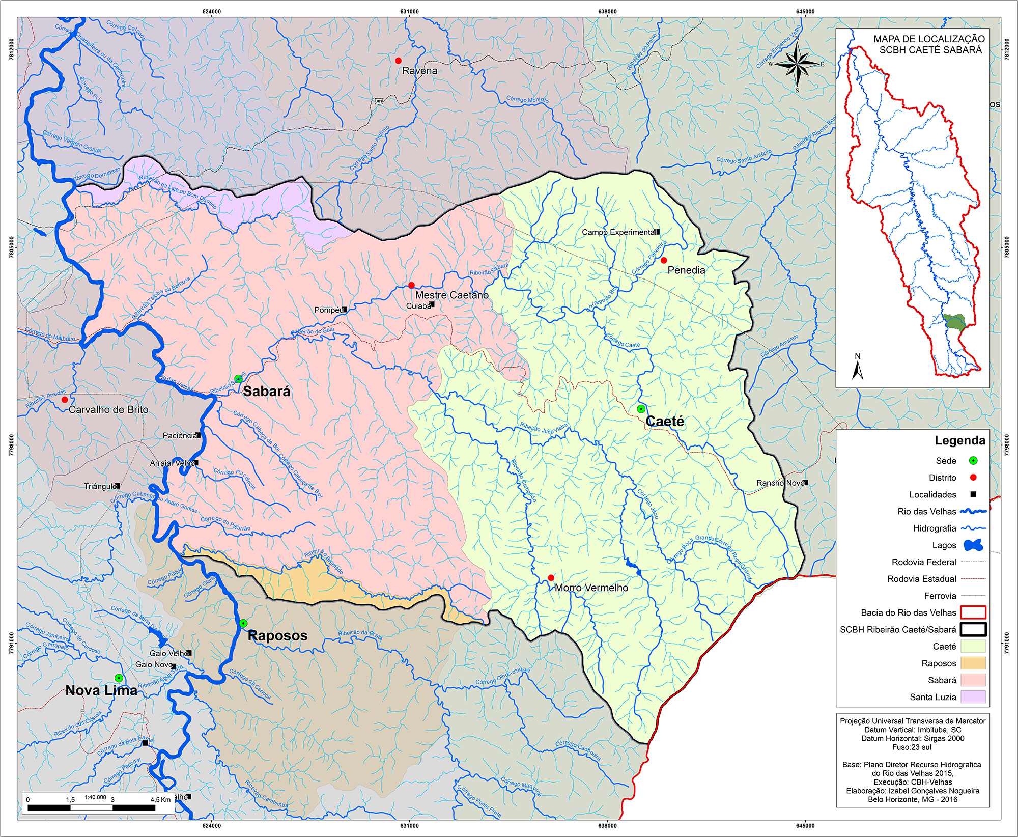 A Unidade Territorial Estratégica (UTE) Ribeirões Caeté-Sabará localiza-se no Alto Rio das Velhas e é composta pelos municípios de Caeté, Raposos, Sabará e Santa Luzia. A Unidade possui uma área de 331,56 km2 e os principais cursos d’água da UTE são o Ribeirão Sabará, Córrego Caeté, Ribeirão Juca Vieira e Ribeirão Gaia.