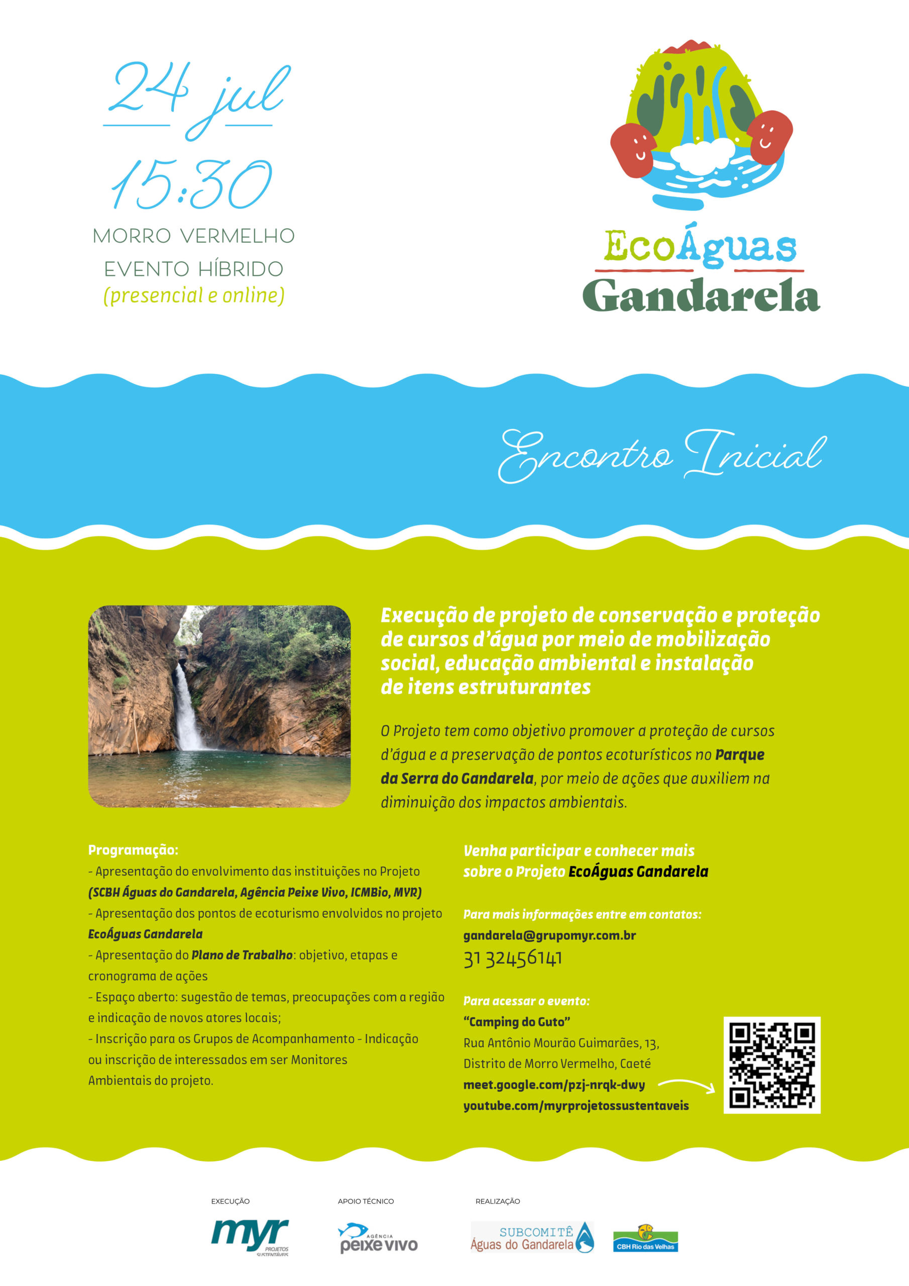 O Comitê da Bacia Hidrográfica do Rio das Velhas e o Subcomitê Águas do Gandarela realizarão Encontro Inicial do projeto de conservação e proteção de pontos ecoturísticos por meio de mobilização social, educação ambiental e instalação de itens estruturais no Parque Nacional da Serra do Gandarela.