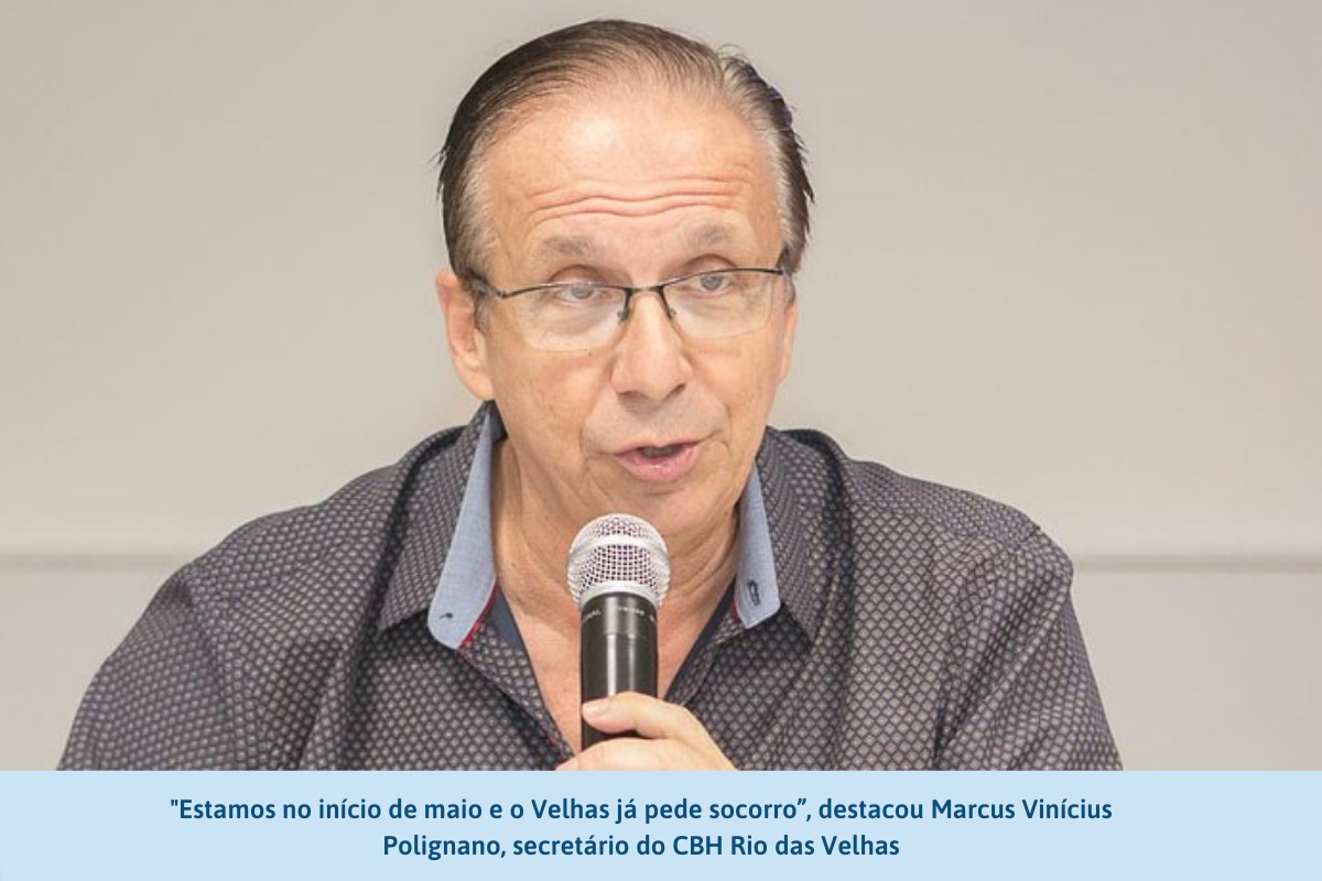Polignano destacou também que esse ano o período crítico iniciou dois meses antes do esperado. “A capital do Estado retira do Rio das Velhas mais de 70% da vazão do rio. A RMBH ocupa apenas 10% da área territorial da bacia, mas possui mais de 70% de toda a sua população. Normalmente os meses críticos são julho, agosto e setembro. Estamos no início de maio e o Velhas já pede socorro”, explicou.