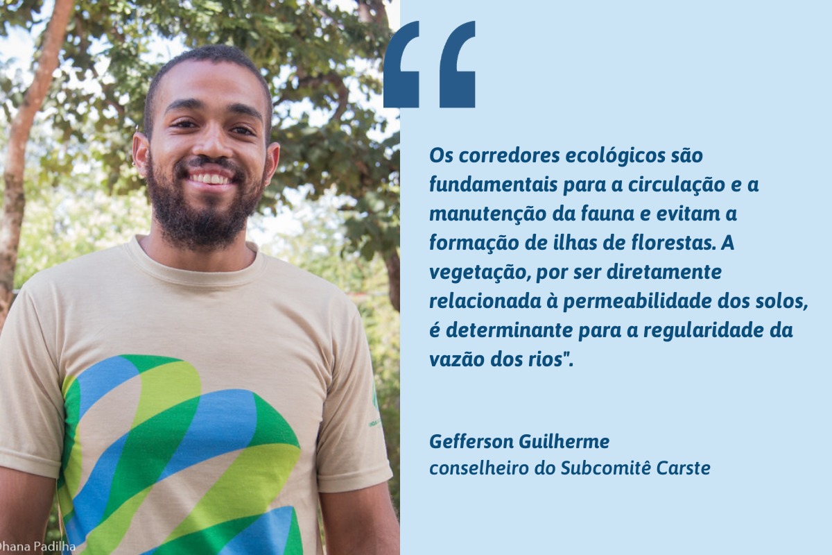 De acordo com o conselheiro do Subcomitê Carste, Gefferson Guilherme Rodrigues da Silva, os corredores ecológicos são importantes, pois, entre outros aspectos, evitam o chamado efeito ilha e ajudam a promover a recarga hídrica. “Os corredores ecológicos são fundamentais para a circulação e a manutenção da fauna e evitam a formação de ilhas de florestas. A vegetação, por ser diretamente relacionada à permeabilidade dos solos, é determinante para a regularidade da vazão dos rios. Assim, os corredores ecológicos nas UTE Carste e Ribeirão da Mata vão contribuir para estabilizar as margens, impedindo a erosão e o assoreamento dos cursos hídricos, entre outras funções importantes, o que contribuirá para a recarga hídrica da bacia do Rio das Velhas”, explicou Gerfferson Silva, destacando também que os corredores ecológicos contribuirão para a conservação do bioma Cerrado e a recuperação da Mata Atlântica.
