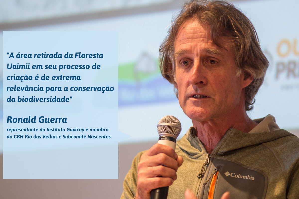 “A área retirada da Floresta Uaimii em seu processo de criação é de extrema relevância para a conservação da biodiversidade. Corresponde a uma das partes mais íntegras do seu território, formada por campo rupestre de altitude, onde estão as principais nascentes que justificaram a criação da UC, como por exemplo a proteção dos mananciais que contribuem para o abastecimento da Região Metropolitana de Belo Horizonte. O processo de compra, venda e de transferência das fazendas da Ajuda, Mata-Pau, Paiol e Tapera deve ser investigado para esclarecimento sobre a delimitação da Floresta”, acrescentou Ronald Guerra.