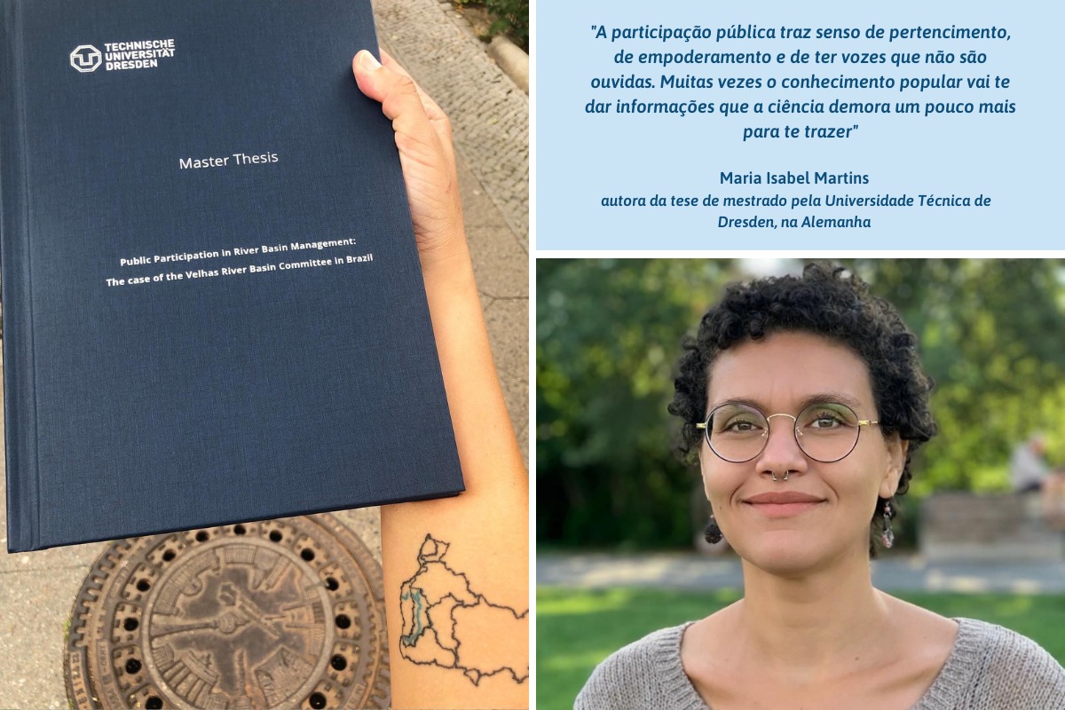 Em sua tese de mestrado defendida no dia 18 de agosto, cujo título é “Participação pública na gestão da bacia hidrográfica de um rio: o caso do Comitê da Bacia Hidrográfica do Rio das Velhas no Brasil” (Publicparticipation in riverbasin management: the case ofthe Velhas riverbasincommittee in Brasil), Maria buscou analisar pontos sobre os processos participativos do CBH Rio das Velhas como a legitimidade, o poder, a comunicação social, a construção de confiança, o desenvolvimento de rede e a capacitação.