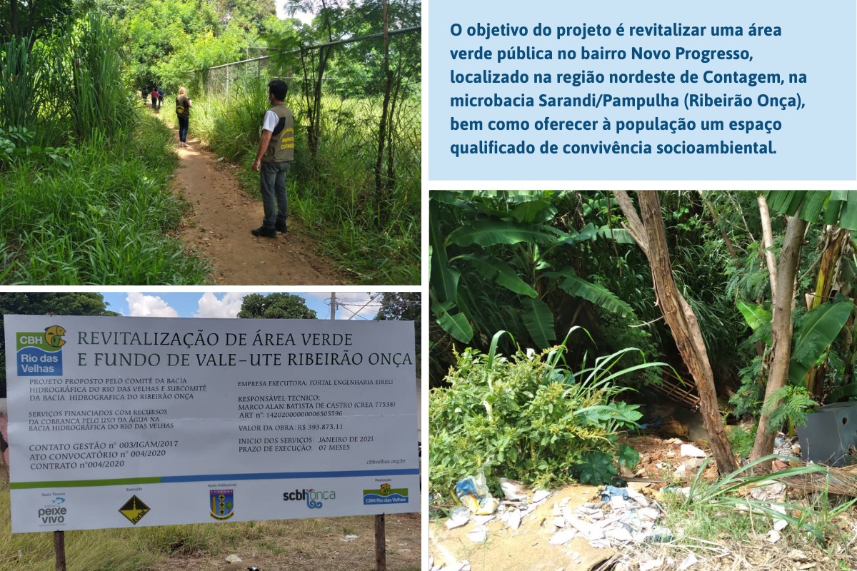 O objetivo do projeto é revitalizar uma área verde pública no bairro Novo Progresso, localizado na região nordeste de Contagem, na microbacia Sarandi/Pampulha (Ribeirão Onça), bem como oferecer à população um espaço qualificado de convivência socioambiental. Assim, o projeto vai promover a preservação do meio ambiente, melhorar a qualidade de vida dos moradores da região, manter as áreas de recarga hídrica na bacia do Ribeirão Onça, controlar erosões e assoreamento dos corpos hídricos, proteger as Áreas de Preservação Permanente (APP) e promover a educação socioambiental com ações de mobilização.