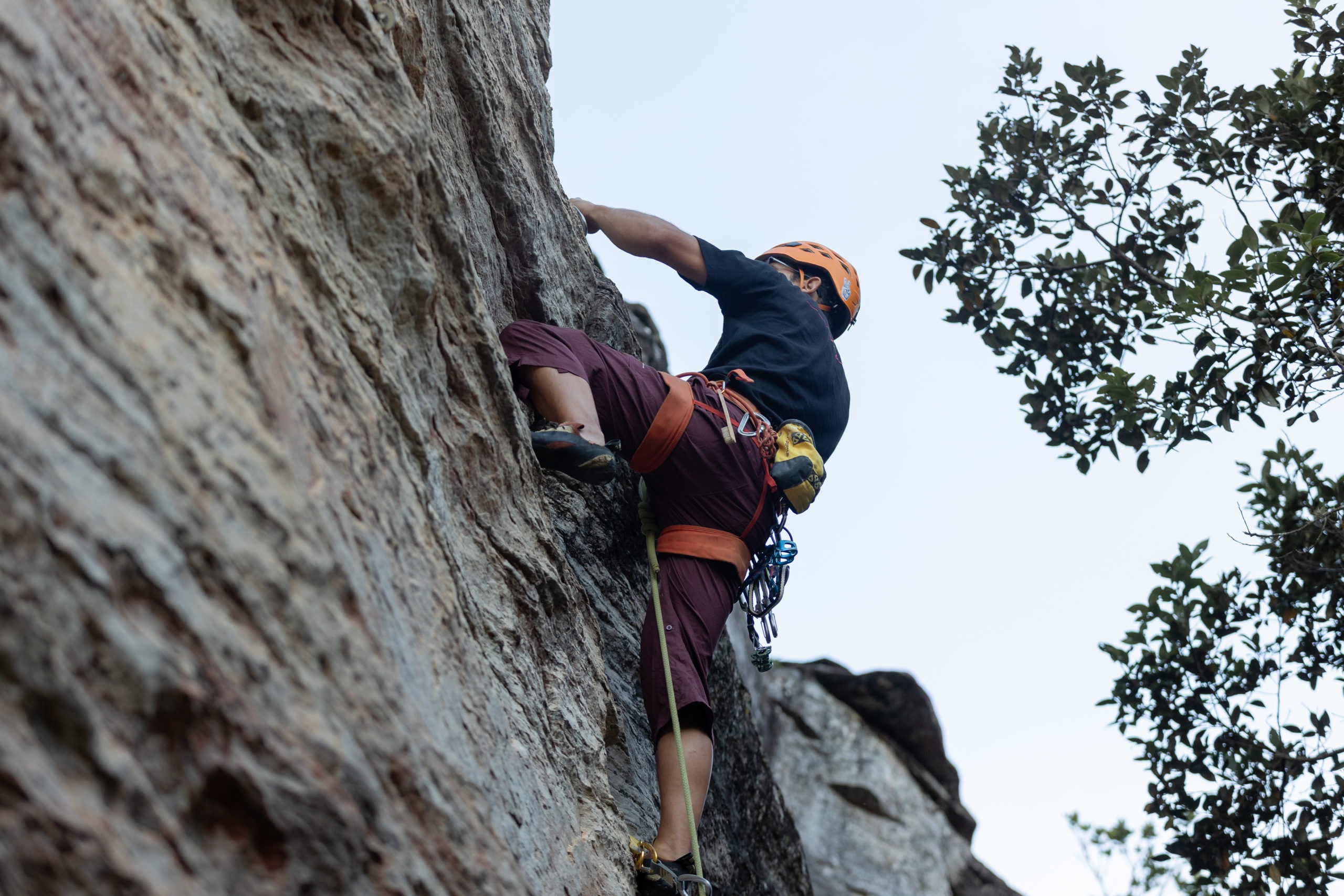 Uma dessas trilhas nos leva à Pedra Branca, ponto de highline a cerca de 20 m do chão e de escalada esportiva. O ouro-pretano Fábio Melo, 39 anos, é guia de montanha do Exército Brasileiro. Muitas vezes, pedala ou corre pelo Parque, curte uma cachoeira e espera anoitecer para fazer o que mais gosta: o Boulder, escalada em formações rochosas sem uso de material, com o apoio de colchões para amortecer as quedas. O local é uma antiga pedreira e a escalada ajudou a acabar com a exploração de pedras, trazendo mais conscientização ambiental aos moradores da região.