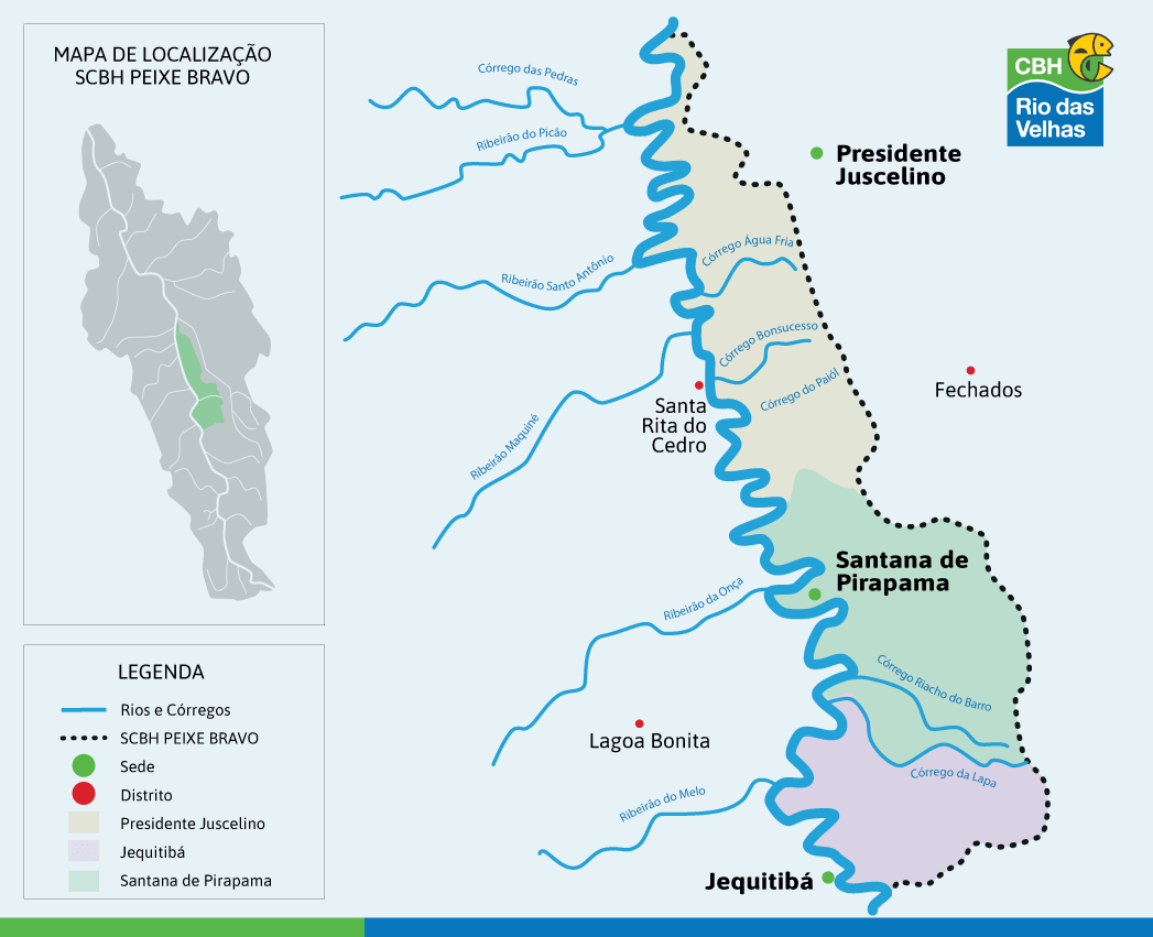 Logo após a Região Metropolitana de Belo Horizonte, na região central mineira, está a Unidade Territorial Estratégica (UTE) Peixe Bravo. Formada pelas cidades de Jequitibá, Santana de Pirapama e Presidente Juscelino, o território é marcado pela riqueza cultural de seu povo. As três cidades, situadas na porção Média-Baixa da Bacia Hidrográfica Rio das Velhas, guardam diversas festas populares que, ano após ano, mantêm as tradições culturais e religiosas da região.