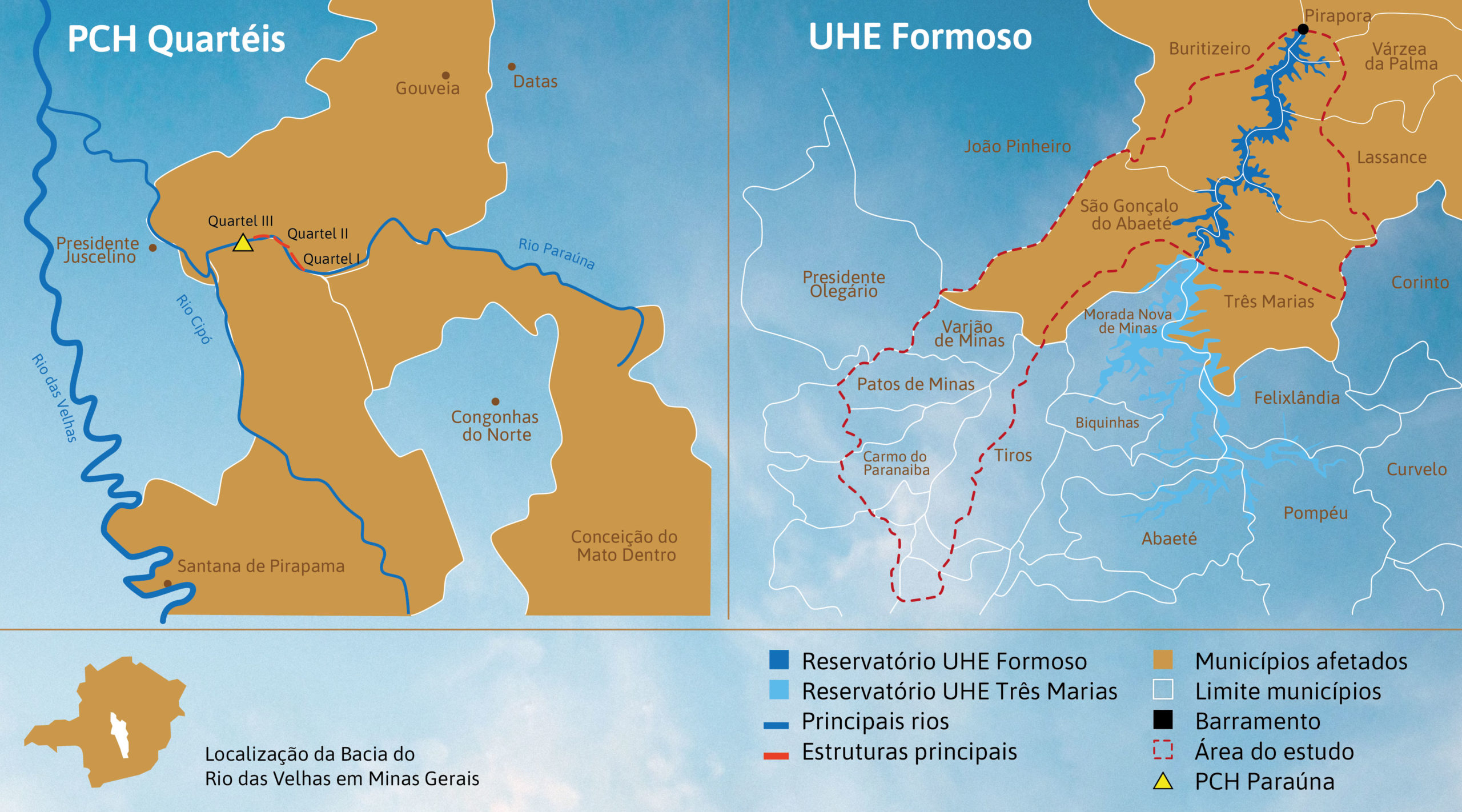 Outro empreendimento que coloca em risco a biodiversidade na Bacia do Rio das Velhas são as Pequenas Centrais Hidrelétricas (PCHs) Quartéis, na Sub-Bacia do Rio Paraúna. O projeto também é da Quebec Engenharia e prevê a construção de três Pequenas Centrais Hidrelétricas (PCHs) – Quartel I, Quartel II e Quartel III – com potência total de 90 MW, situadas nos municípios de Gouveia, Santana de Pirapama e Conceição do Mato Dentro.