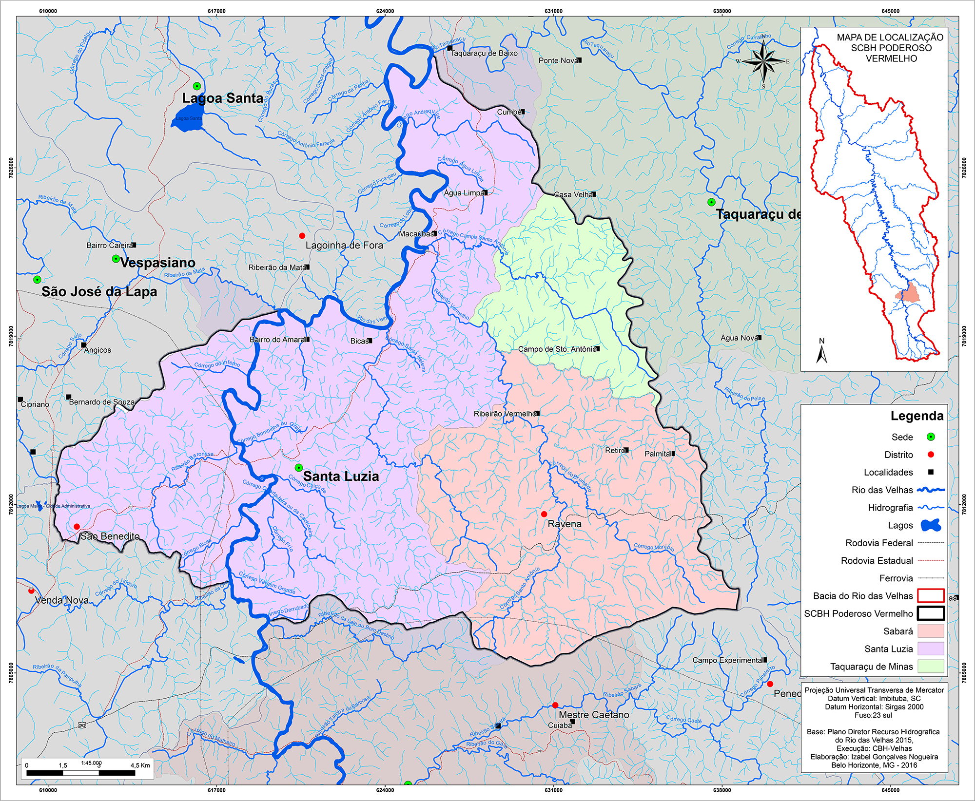 A Unidade Territorial Estratégica (UTE) Poderoso Vermelho localiza-se no Médio Alto Rio das Velhas. Composta pelos municípios de Sabará, Santa Luzia e Taquaraçu de Minas, ocupa uma área de 360,48 km2. Os principais rios são o Ribeirão Vermelho, Ribeirão Poderoso, Ribeirão das Bicas e Córrego Santo Antônio.