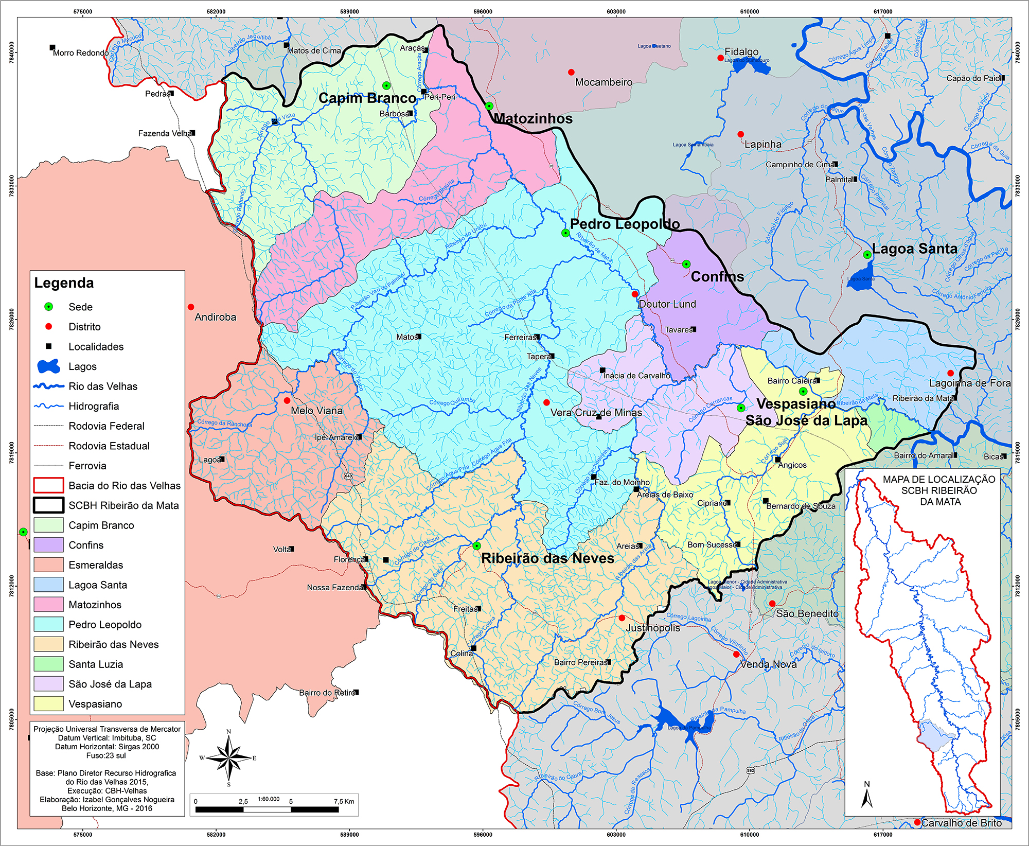 A Unidade Territorial Estratégica (UTE) Ribeirão da Mata localiza-se no Médio Alto Rio das Velhas. Composta pelos municípios de Capim Branco, Confins, Esmeraldas, Lagoa Santa, Matozinhos, Pedro Leopoldo, Ribeirão das Neves, Santa Luzia, São José da Lapa e Vespasiano, ocupa uma área de 786,84 km².