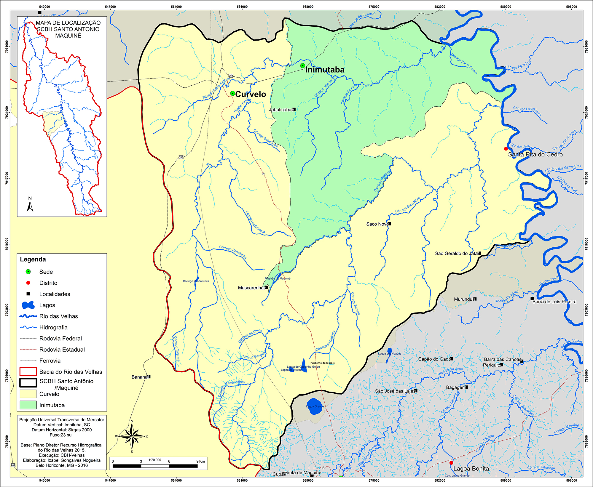 A Unidade Territorial Estratégica (UTE) Santo Antônio-Maquiné localiza-se no Médio Baixo Rio das Velhas. Composta pelos municípios de Curvelo e Inimutaba, ocupa uma área de 1.336,82 km². Os principais cursos d’água da região são o Ribeirão Maquiné, com extensão de 90,45 km, Córrego Santo Antônio, com aproximadamente 25 km passando pela cidade de Curvelo e o Córrego Riacho Fundo.