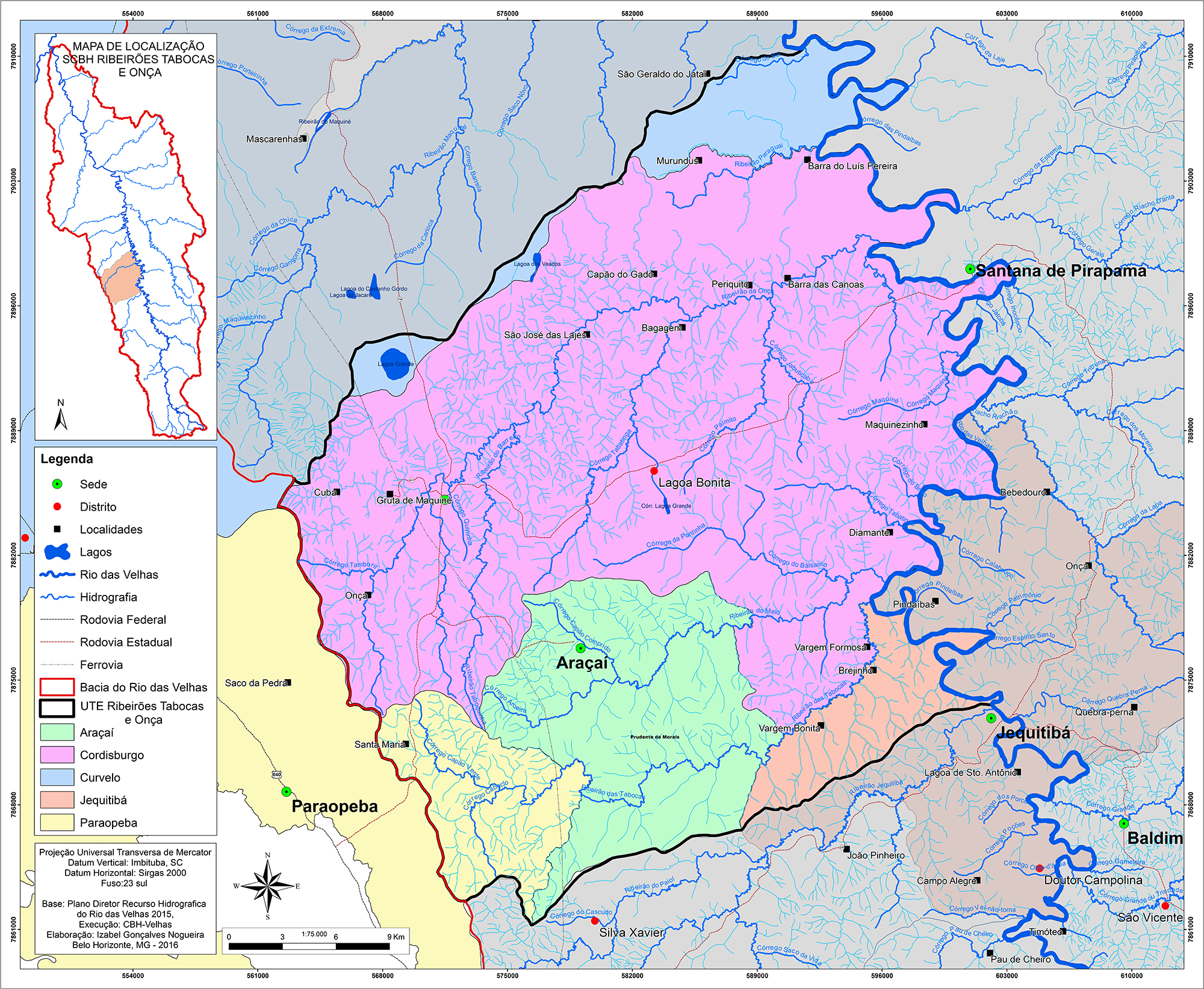 A Unidade Territorial Estratégica (UTE) Ribeirão Tabocas e Onça localiza-se no Médio Baixo Rio das Velhas. Composta pelos municípios de Araçaí, Cordisburgo, Curvelo, Jequitibá e Paraopeba, ocupa uma área de 1.223,26 km2. Seus principais cursos d’água são o Ribeirão da Onça, Ribeirão Tabocas, Ribeirão do Melo e Córrego Barro Vermelho.